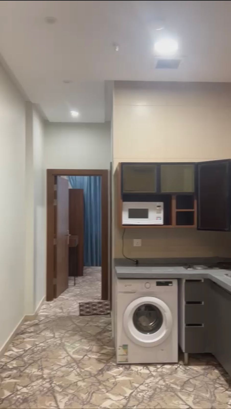مغاسل، مطبخ راكب، غسالة، ثلاجة، مايكرويف، خزنات، وأثاث فاخر كامل